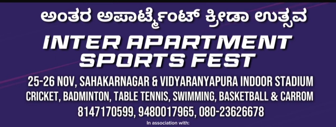ಬೆಂಗಳೂರಿನಲ್ಲಿ ಹೊಸ ಪ್ರಯೋಗ, ಅಂತರ ಅಪಾರ್ಟಮೆಂಟ್ ಕ್ರೀಡೆಗೆ ಕ್ಷಣಗಣನೆ