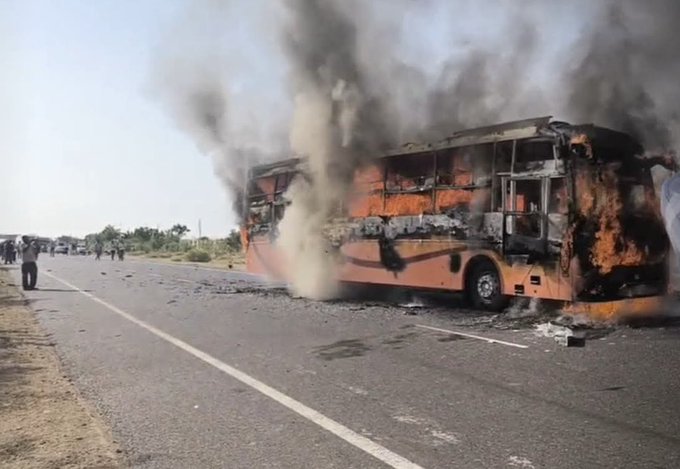 ಚಲಿಸುತ್ತಿದ್ದ AC ಬಸ್ಸಿನಲ್ಲಿ ಬೆಂಕಿ : 20 ಜನರ ಸಾವು
