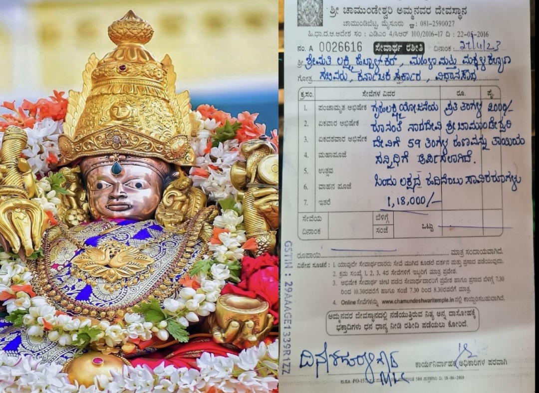 ಚಾಮುಂಡೇಶ್ವರಿ ದೇವಿಗೆ 5 ವರ್ಷದ ಗೃಹಲಕ್ಷ್ಮಿ ಯೋಜನೆ ಹಣ ಒಂದೇ ಸಲಕ್ಕೆ ಪಾವತಿ