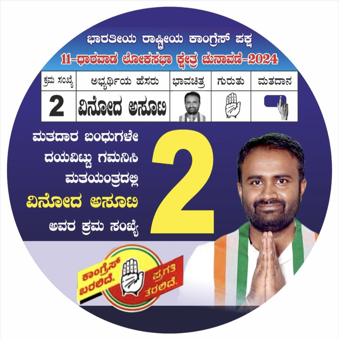 ಧಾರವಾಡ ಲೋಕಸಭಾ ಕ್ಷೇತ. ವಿನೋದ ಅಸೂಟಿ ಕ್ರಮ ಸಂಖ್ಯೆ 2
