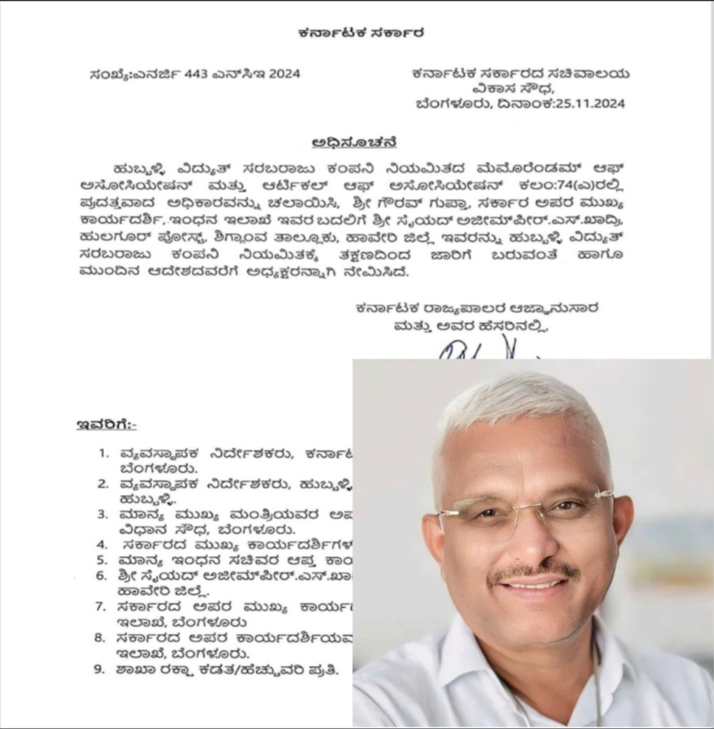 ಅಜ್ಜಂಪೀರ ಖಾದ್ರಿಗೆ ಉನ್ನತ ಹುದ್ದೆ. ಹೆಸ್ಕಾಂ ಅಧ್ಯಕ್ಷರಾಗಿ ನೇಮಕ.