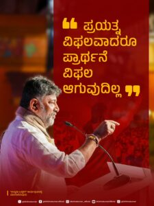 ನಿನ್ನೆಯಷ್ಟೆ ಮೈಸೂರಿನಲ್ಲಿ ರಾಹುಲ್ ಗಾಂಧಿಯವರನ್ನು ಭೇಟಿ ಮಾಡಿ ಬಂದಿರುಬ ಡಿ ಕೆ ಶಿವಕುಮಾರ ಅವರು ಪ್ರಯತ್ನ ವಿಫಲವಾದರೂ ಪ್ರಾರ್ಥನೆ ವಿಫಲ ಆಗುವುದಿಲ್ಲ ಎಂದು ಹೇಳಿದ್ದು, ಇದೀಗ ಚರ್ಚೆಗೆ ಎಡೆಮಾಡಿದೆ.