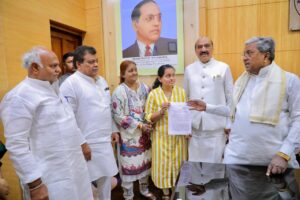 ಹಿರಿಯ ಐಎಎಸ್ ಅಧಿಕಾರಿ ಮಹಾಂತೇಶ್ ಬೀಳಗಿ ಅವರು ಸೇವೆಯಲ್ಲಿರುವಾಗಲೇ ನಿಧನ ಹೊಂದಿದ ಹಿನ್ನೆಲೆಯಲ್ಲಿ ಅವರ ಪುತ್ರಿ ಚೈತನ್ಯಾ ಎಮ್.ಬೀಳಗಿ ಅವರಿಗೆ ಅನುಕಂಪದ ಆಧಾರದ ಮೇಲೆ ಸರ್ಕಾರಿ ಉದ್ಯೋಗದ ನೇಮಕಾತಿ ಪತ್ರವನ್ನು ಇಂದು ಮುಖ್ಯಮಂತ್ರಿ ಸಿದ್ದರಾಮಯ್ಯನವರು ಹಸ್ತಾಂತರಿಸಿದರು.