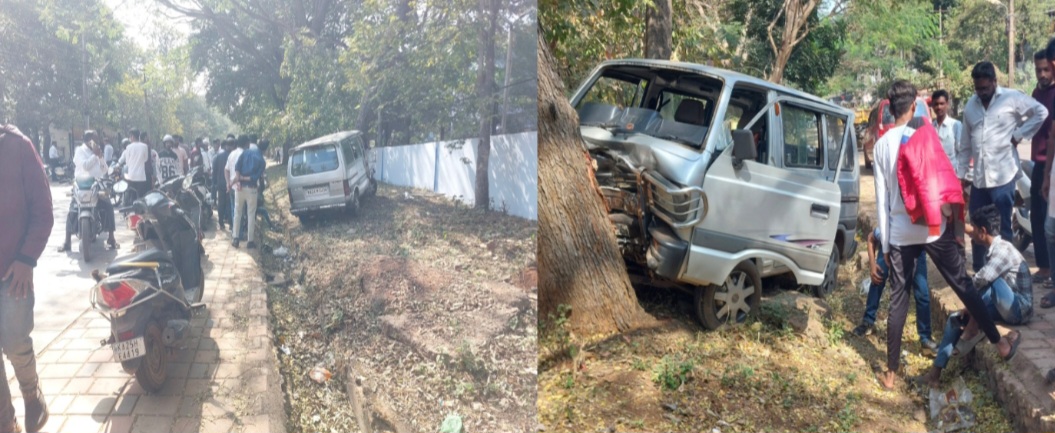 ಧಾರವಾಡ ಆಕಾಶವಾಣಿ ಬಳಿ ಮರಕ್ಕೆ ಡಿಕ್ಕಿ ಹೊಡೆದ ಓಮಿನಿ ಕಾರು