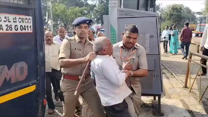 ಮಹಾಮೇಳಾವ ನಡೆಸಲು ಬಂದಿದ್ದ ಎಮ್ ಇ ಎಸ್ ಪುಂಡರನ್ನು ದರದರನೇ ಎಳೆದೂಯ್ದ ಪೊಲೀಸರು.