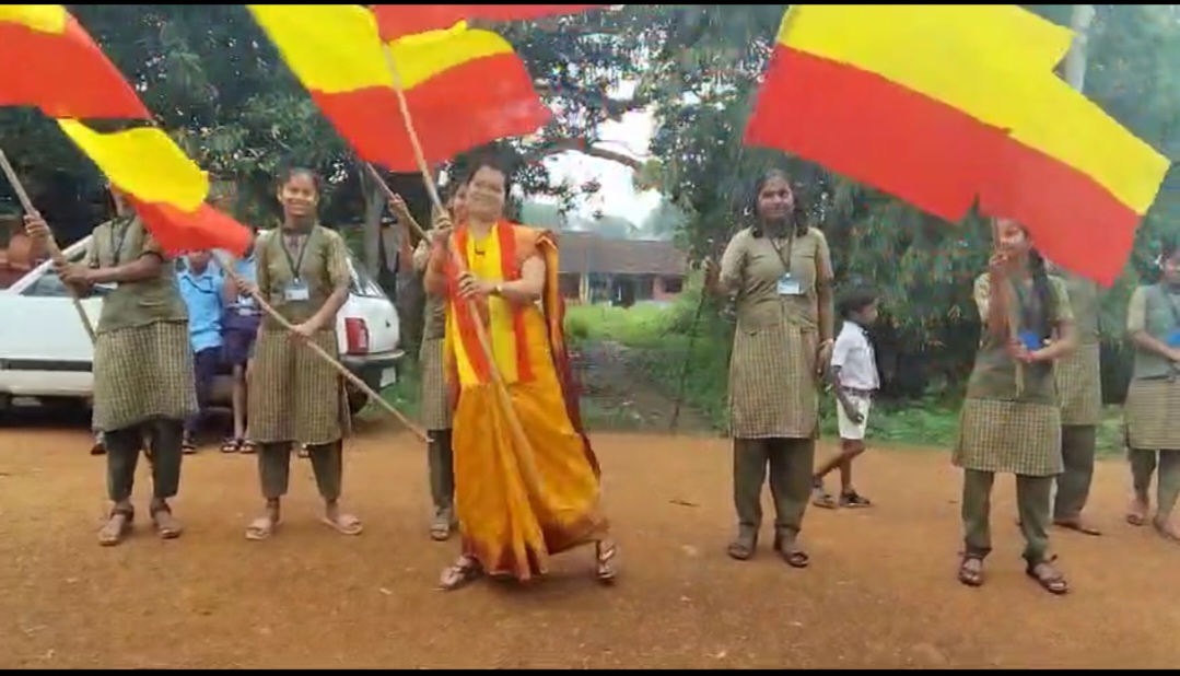 ಕನ್ನಡ ಬಾವುಟ ಹಿಡಿದು, ಕನ್ನಡದ ಹಾಡಿಗೆ ಮಕ್ಕಳೊಂದಿಗೆ ಡ್ಯಾನ್ಸ್ ಮಾಡಿದ ಶಿಕ್ಷಕಿ