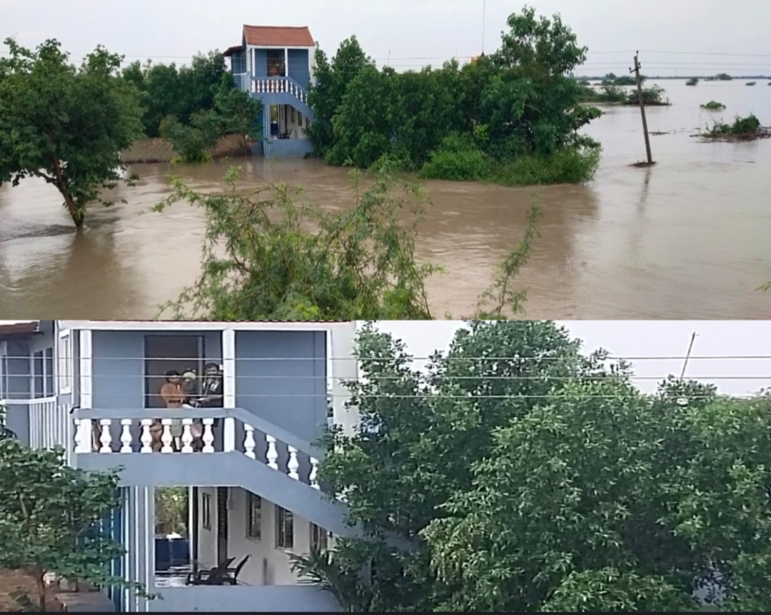 ತುಂಬಿ ಹರಿಯುತ್ತಿರುವ ಬೆಣ್ಣೆಹಳ್ಳ. ಸಿಕ್ಕಿಹಾಕಿಕೊಂಡ ನಾಲ್ವರು ಪ್ರವಾಸಿಗರು
