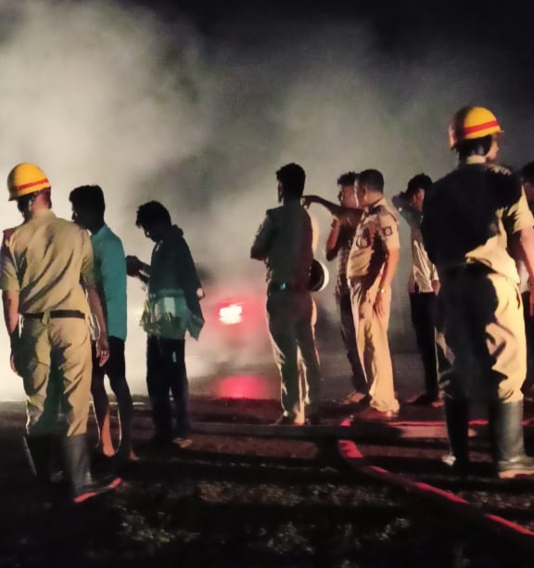 ಧಾರವಾಡದ ಒಳಗೆ ಮಳೆ, ಧಾರವಾಡದ ಹೊರಗೆ ಬೆಂಕಿ. ಟ್ರಕ್ ಸಂಪೂರ್ಣ ಭಸ್ಮ