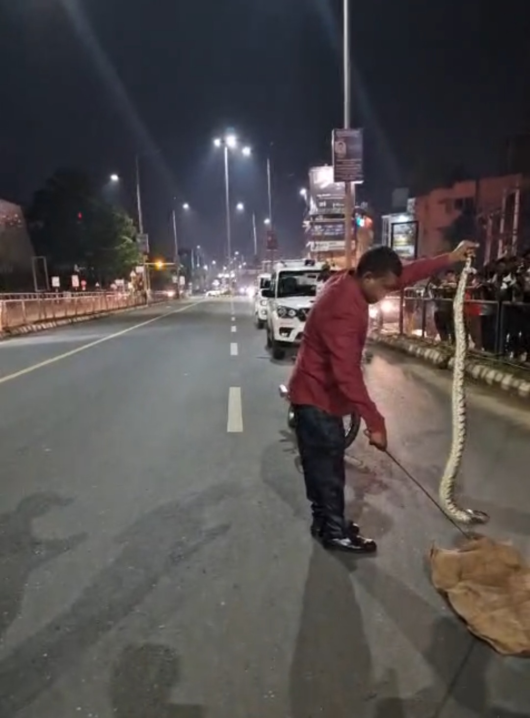 ಹುಬ್ಬಳ್ಳಿಯ ಬಿ ವಿ ಬಿ ಕಾಲೇಜು ಎದುರು ರಸ್ತೆಗೆ ಬಂದ ಹೆಬ್ಬಾವು