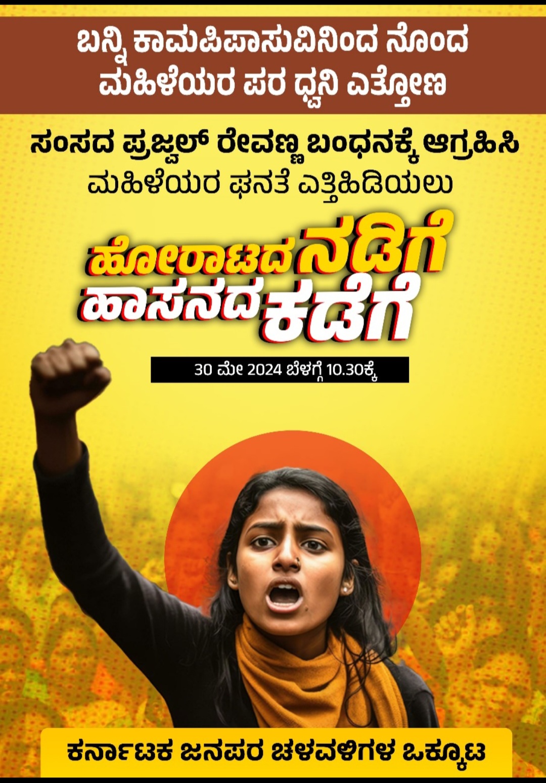 ವೀರ ವನಿತೆಯರ ನಡಿಗೆ ಹಾಸನ ಕಡೆಗೆ. ಪ್ರಜ್ವಲ್ ರೇವಣ್ಣ ಬಂಧನಕ್ಕೆ ಆಗ್ರಹಿಸಿ ಹಾಸನ ಚಲೋ