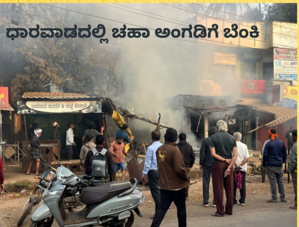 ಧಾರವಾಡ : ಎಮ್ಮಿಕೇರಿ ಬಳಿ ಚುಮು ಚುಮು ಚಳಿ ಮಧ್ಯೆ ಚಹಾ ಅಂಗಡಿಗೆ ಬೆಂಕಿ