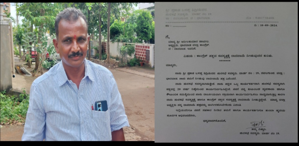 ನವಲಗುಂದ ಪುರಸಭೆ ಸದಸ್ಯತ್ವಕ್ಕೆ ಪ್ರಕಾಶ ಶಿಗ್ಲಿ ರಾಜೀನಾಮೆ