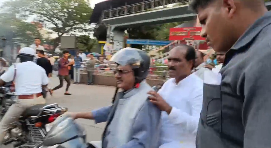 ಧಾರವಾಡದಲ್ಲಿ ಹೆಲ್ಮೆಟ್ ಹಾಕಿಕೊಂಡು ಬೈಕ್ ಓಡಿಸಿದ ಜಮೀರ್ ಅಹ್ಮದಖಾನ್