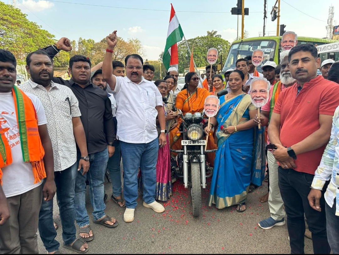ಮತ್ತೊಮ್ಮೆ ಮೋದಿ ಘೋಷಣೆಯೊಂದಿಗೆ ಬುಲೆಟ್ ಪ್ರಯಾಣ ಬೆಳೆಸಿದ ದಿಟ್ಟ ಮಹಿಳೆ.