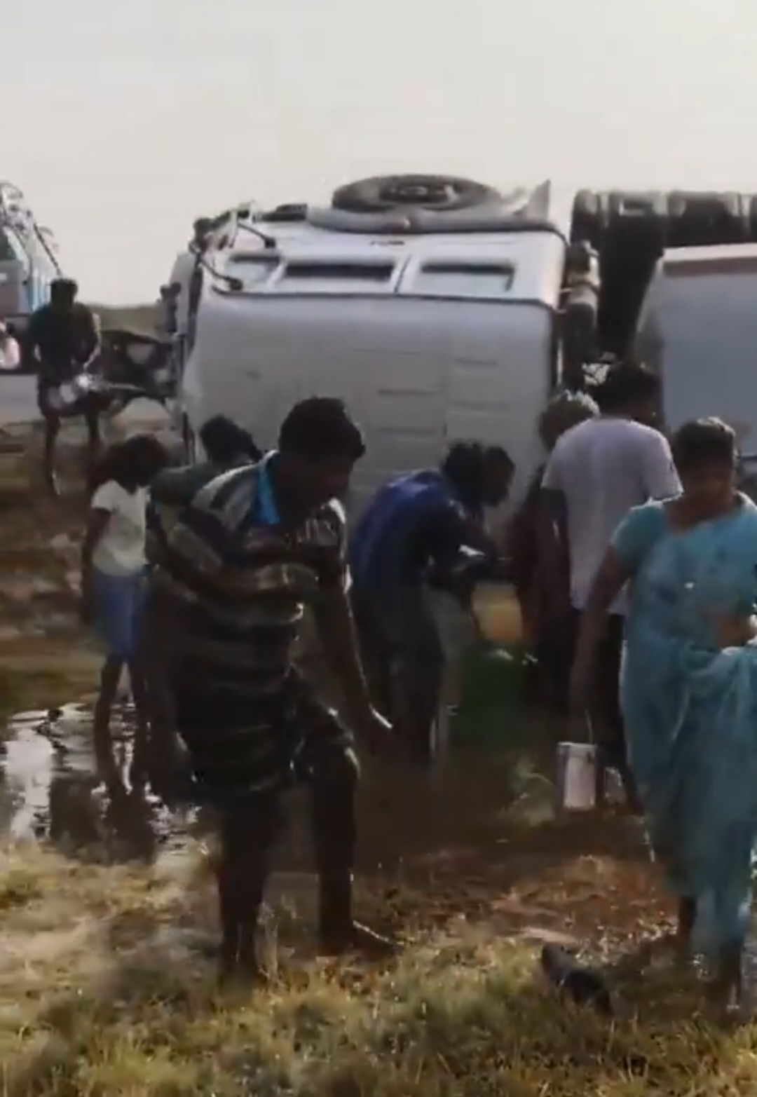 ತಿರುಪತಿ ದೇವಸ್ಥಾನಕ್ಕೆ ತುಪ್ಪ ಸಾಗಿಸುತ್ತಿದ್ದ ಟ್ಯಾಂಕರ್ ಪಲ್ಟಿ / ತುಪ್ಪ ಗ್ರಾಮಸ್ಥರ ಪಾಲು