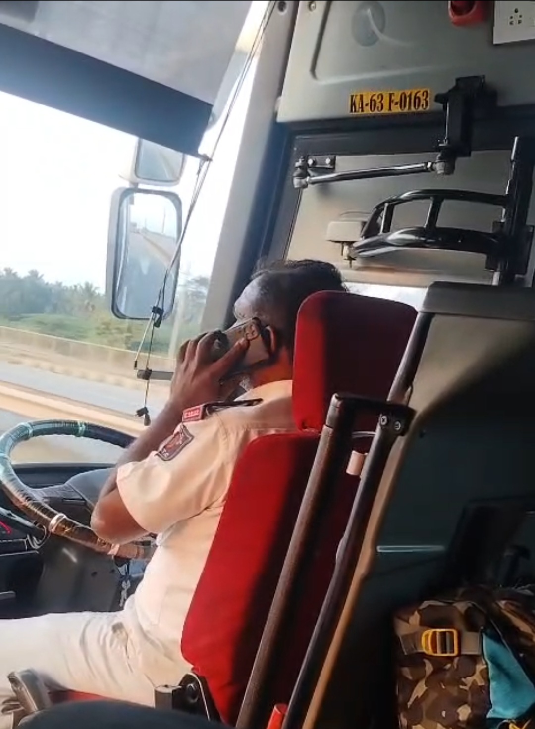ಮೊಬೈಲ್ ನಲ್ಲಿ ಮಾತನಾಡುತ್ತಲೆ ಬಸ್ ಚಾಲನೆ ಮಾಡಿದ ಚಾಲಕ !