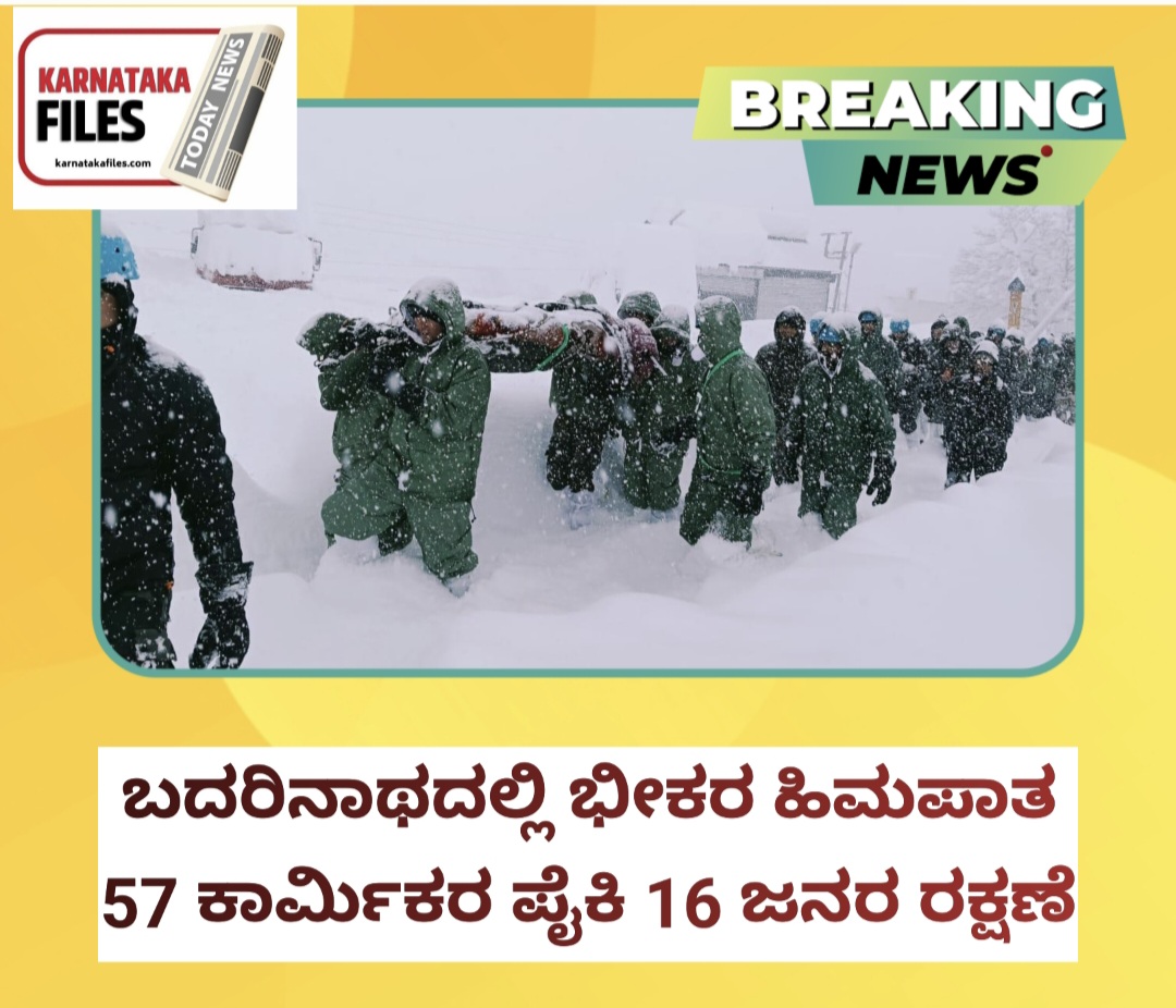 ಬದರಿನಾಥದಲ್ಲಿ ಭೀಕರ ಹಿಮಪಾತ. 41 ಕಾರ್ಮಿಕರು ಮೃತಪಟ್ಟಿರುವ ಶಂಕೆ