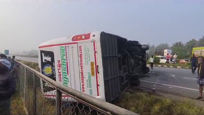 ಚಾಲಕನ ನಿರ್ಲಕ್ಷ, ಬಸ್ ಪಲ್ಟಿ, 30 ಜನರಿಗೆ ಗಾಯ