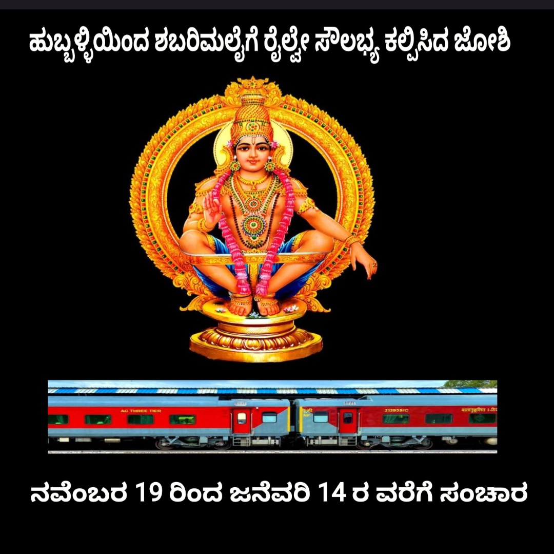 ಅಯ್ಯಪ್ಪ ಭಕ್ತರ ಸುಗಮ ಪ್ರಯಾಣಕ್ಕೆ ಹುಬ್ಬಳ್ಳಿಯಿಂದ ಶಬರಿಗೆ ರೈಲು.