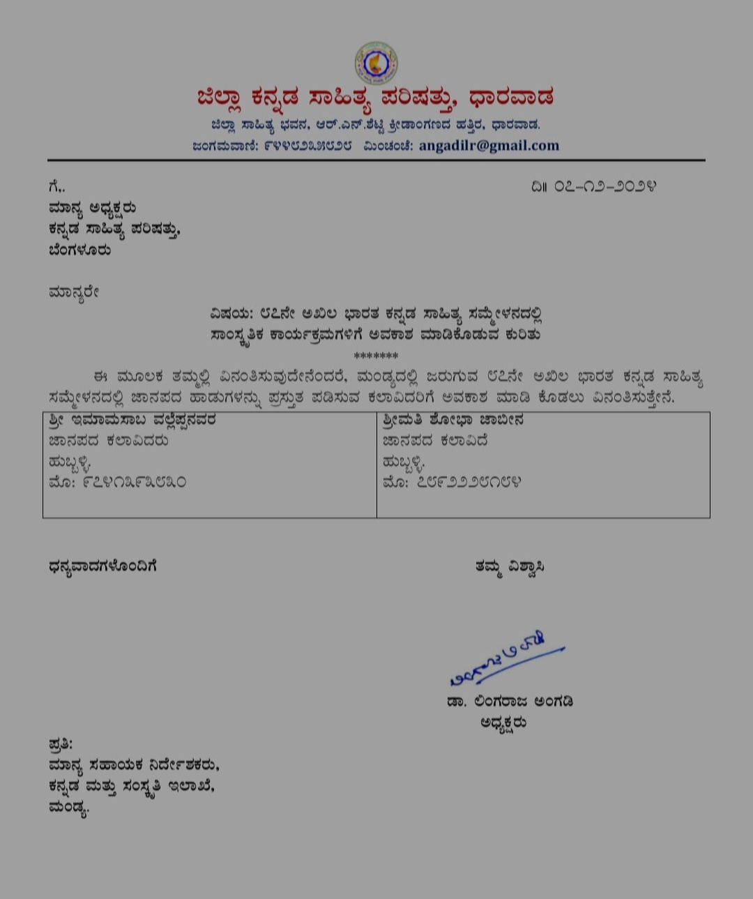 ಕನ್ನಡ ಸಾಹಿತ್ಯ ಸಮ್ಮೇಳನದಲ್ಲಿ ಧಾರವಾಡದ ಜಾನಪದ ಕಲಾವಿದರಿಗೆ ಅವಕಾಶ ನಿರಾಕರಣೆ