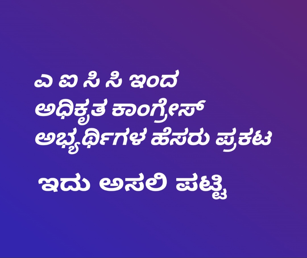 ಎ ಐ ಸಿ ಸಿ ಇಂದ ಕಾಂಗ್ರೇಸ್ ಅಧಿಕೃತ ಅಭ್ಯರ್ಥಿಗಳ ಪಟ್ಟಿ ಬಿಡುಗಡೆ